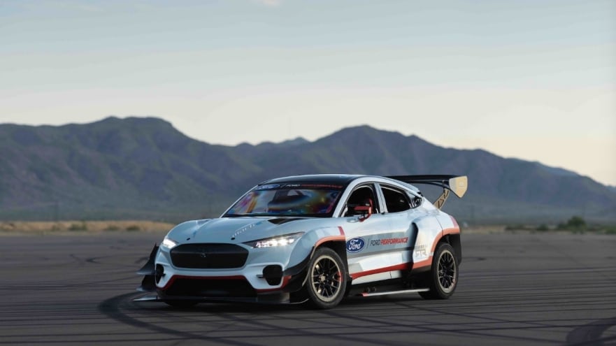 这辆原型车是福特全球性能车团队与RTR合作,由一辆白色Mustang Mach-E GT改装而成,它的峰值功率达到1400马力。与其他车不同的是,精心设计的底盘和动力总成共同配合,让它在各种工况下都能有出色的表现。