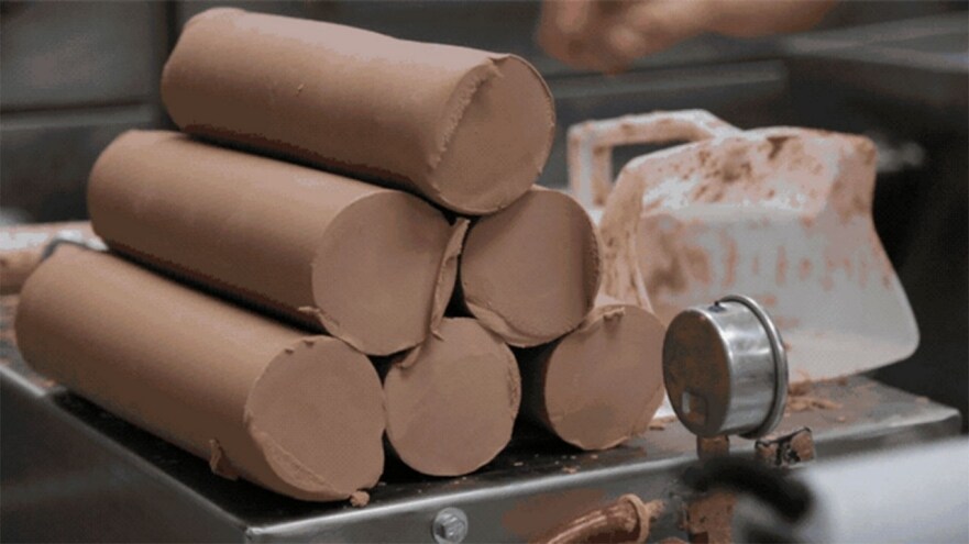 Once gathered, these clay chips are placed in the recycling machine – designed to process only Ford’s unique clay material and nothing else. The machine compresses and churns the clay with multiple blades, sucking all the air out of the material. The clay is then passed through a nozzle that’s heated just enough to churn it out with the proper consistency so that it can be reused.