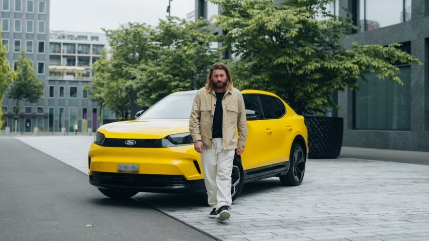 · Depuis avril 2025, Baschi conduit la Ford Capri en Vivid Yellow, électrisante, affirmée, d’un style sans compromis