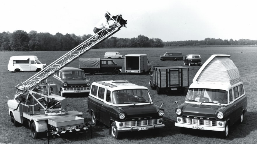Der Ford Transit der ersten Generation war bereits zur Markteinführung vor fünf Jahrzehnte in zwei Radständen, zwei Dachhöhen sowie 18 Tür-Kombinationen bestellbar. Hinzu kamen von Beginn an vielfältige Karosserie-Versionen wie Kastenwagen, Kombi, Bus, Panorama-Bus, Hoch- und Tiefladepritsche, Fahrgestell mit Fahrerhaus und Doppelkabine. Ergänzend fächerte sich der Transit in gleich sechs Gewichtsklassen vom FT 600 bis zum FT 1750 auf. Die Buchstaben „FT“ standen für Ford Transit, die Zahl bedeutete die Nutzlast in Kilogramm. Anders herum formuliert: Die Spanne des zulässigen Gesamtgewicht reichte bereits damals von 1,9 bis 3,25 Tonnen.