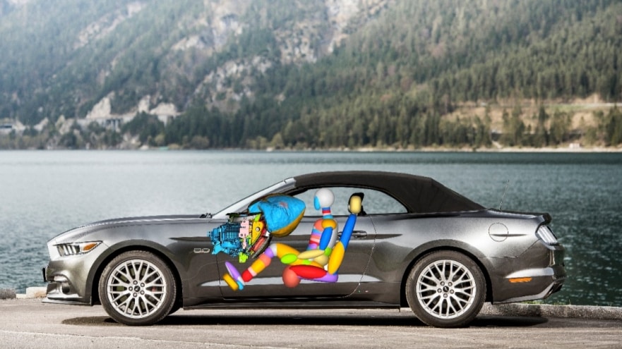 An innovative knee airbag design for the all-new Ford Mustang means more room for front seat passengers