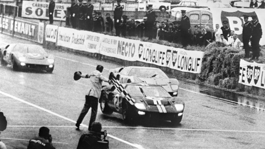 A) The idea was that the leading GT40s would cross the line together but in practise it wasn’t possible to have a dead heat. We weren’t sure who had won initially.