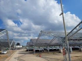 Durante el 2023, se montaron 1656 paneles solares sobre las playas de estacionamiento de vehículos 0km del concesionario, que totalizan 828 kWp capaces de generar aproximadamente 1.370.000 kWh al año, equivalentes al consumo de más de 450 hogares.