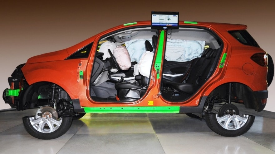 A carroceria do EcoSport utiliza aço de ultra-alta resistência nas travessas dianteiras e aço de alta resistência nas colunas dianteiras e no assoalho, além de aço ao boro nas colunas centrais. O emprego destes materiais permite direcionar as energias de um impacto para fora da cabine em caso de colisão, formando uma célula rígida em torno dos ocupantes. Fora isso, a coluna de direção, os paineis das portas e o porta-luvas trazem sistemas de absorção de energia de impacto.