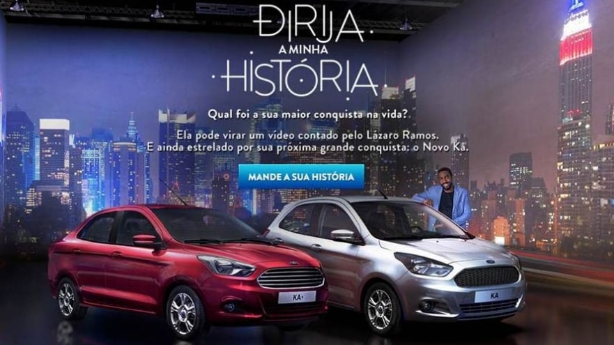 No lançamento do novo Ka, a campanha “Dirija Minha História” convidou pessoas a contar suas conquistas na vida e as reproduziu numa websérie com projeção mapeada – tecnologia de imagens 2D e 3D. Foi premiada nas categorias Publicidade Online e Melhor Uso de Mídias Sociais.