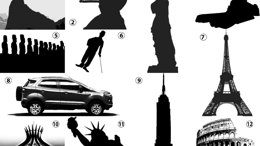O Ford EcoSport tem um design original e marcante que se destaca nas ruas de vários países. Para comprovar a personalidade e o carisma desse projeto brasileiro, basta fazer um teste rápido na ilustração anexa e ver quantas figuras é possível identificar somente pela imagem da silhueta. Esse recurso ajuda a avaliar a harmonia e o equilíbrio de proporções de cada forma e revela aspectos interessantes da construção de um veículo.