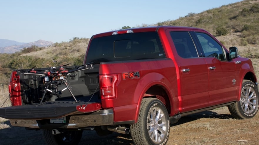- Usando o smartphone do motorista, a F-150 estabeleceria uma ligação em tempo real entre o drone, a picape e a nuvem, para as informações poderem ser compartilhadas. O drone poderia receber instruções para retornar à picape em um novo destino, permitindo a sua mobilidade.