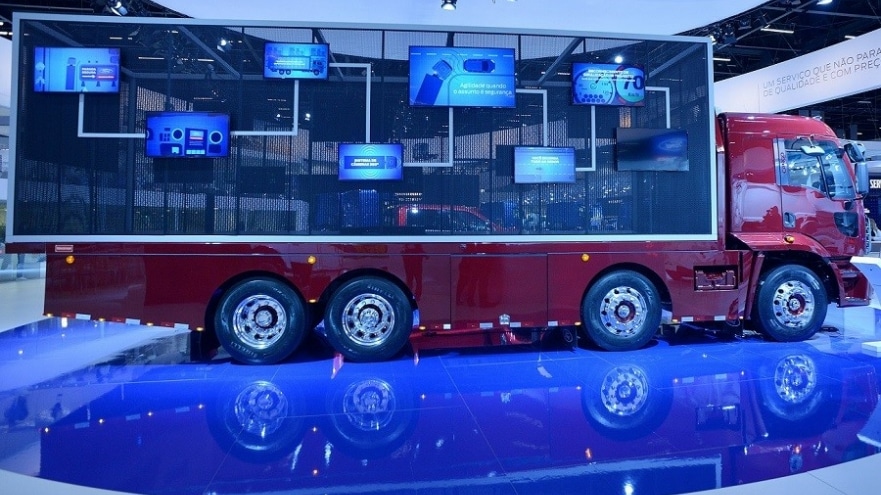 A Ford exibe na Fenatran o protótipo Cargo Connect, caminhão com tecnologias inovadoras de assistência ao motorista e conectividade que dão uma visão de médio e longo prazo da evolução no segmento de transporte de carga, preparando a chegada dos veículos totalmente autônomos. Desenvolvido pela marca no Brasil em parceria com empresas líderes do setor, o veículo tem como base um protótipo do Cargo 8x2 com transmissão automatizada.