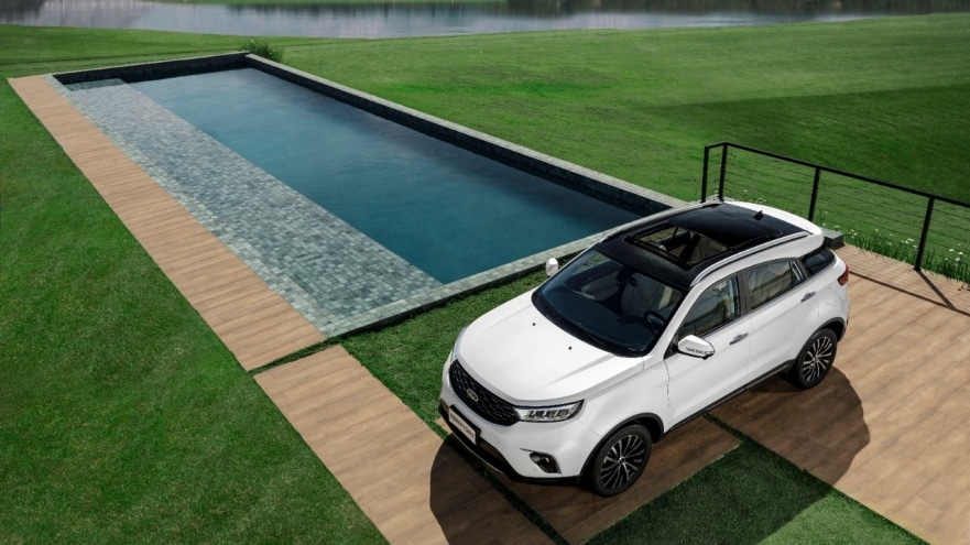 O Territory Titanium, versão de topo, vem com itens adicionais de estilo e tecnologia, incluindo recursos avançados de assistência ao motorista. Externamente, ele se diferencia pelo teto pintado de preto, rodas de liga leve de 18” com pneus 235/50 R18, maçanetas cromadas e retrovisores com luzes de aproximação e rebatimento elétrico.