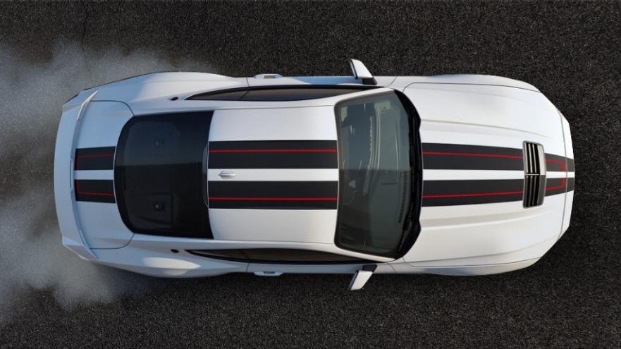 ·       O esportivo visto de cima tem como destaque as faixas esportivas que percorrem toda a carroceria, criando um visual único