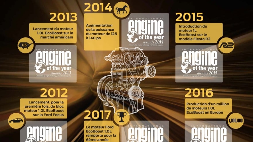 Le moteur EcoBoost a été sacré moteur international de l'année 2017, dans la catégorie « Meilleur moteur de moins d’1 litre » : il s’agit de sa sixième victoire consécutive dans la catégorie.