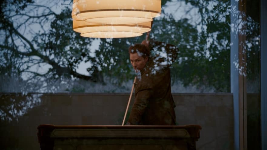 The unique idea allowed for plenty of firsts on the shoot. For instance, McConaughey is shown at an intimate dinner party that culminates in a tightly controlled pool shot that allows the actor to flash back to his drive in the Nautilus.